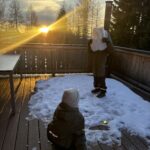 Meine Kinder sind wahre Frühaufsteher, auch (oder sollte ich schreiben gerade!? :-) ) im Urlaub. Während es da in Hotels manchmal schwierig ist, die Kinder noch bis zum Start des Frühstücks zu bespaßen, haben wir in unserem Heidi Chalet gefrühstückt und dann den Sonnenaufgang in intensiven Gelb- und Rottönen beim Schneemann bauen bestaunt. Was für ein Start in den Tag!
